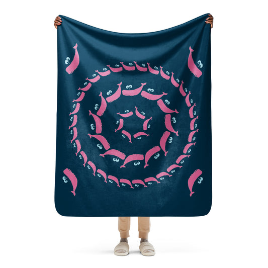 Sperm Whale Sherpa blanket - Pink on Navy
