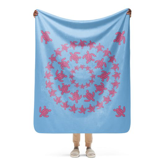 Turtle Sherpa blanket - Pink on Blue