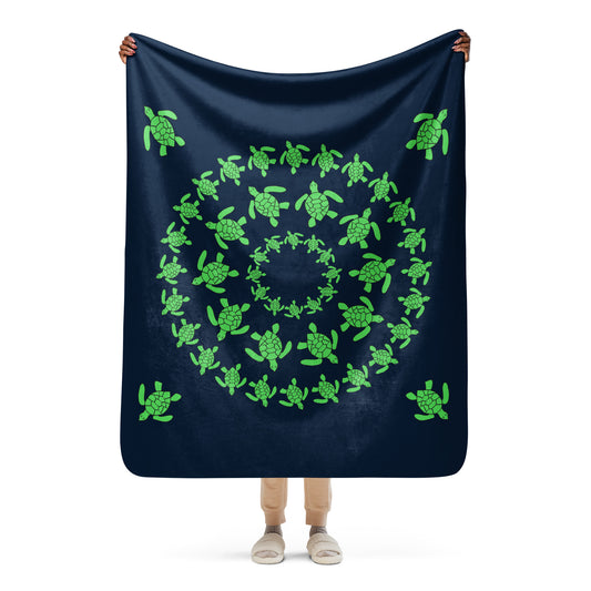 Turtle Sherpa blanket - Green on Navy
