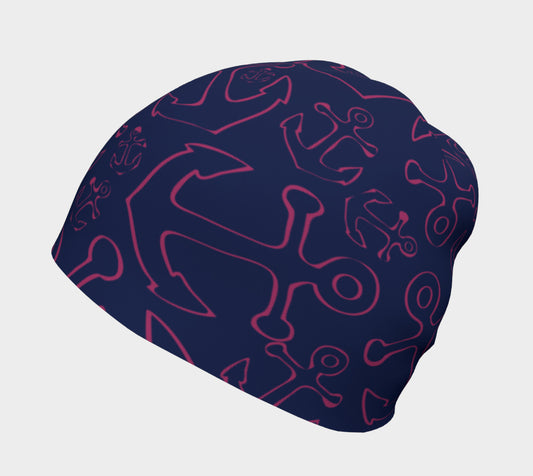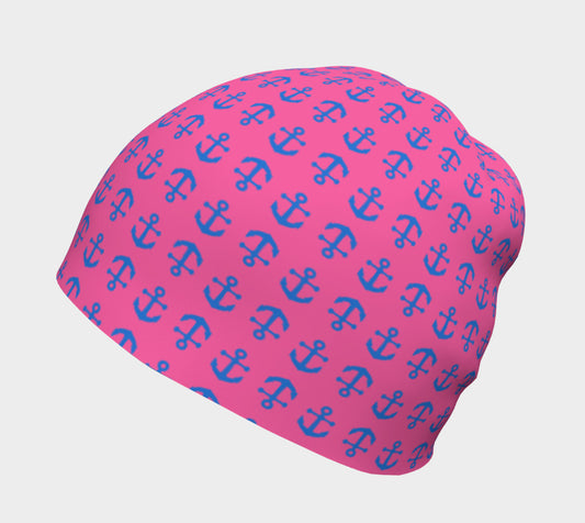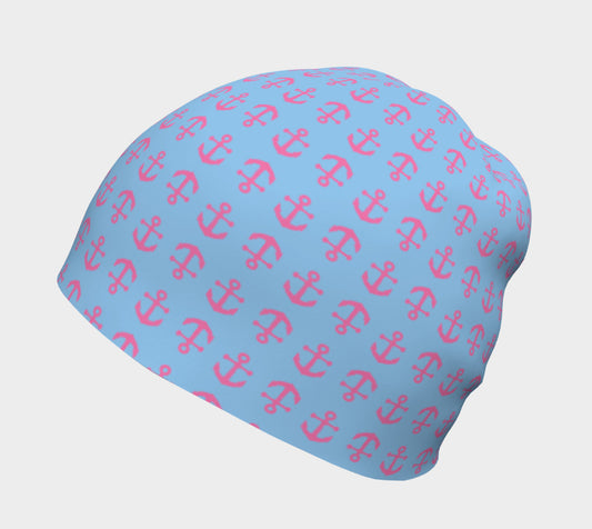 Anchor Toss Winter Beanie - Pink on Light Blue