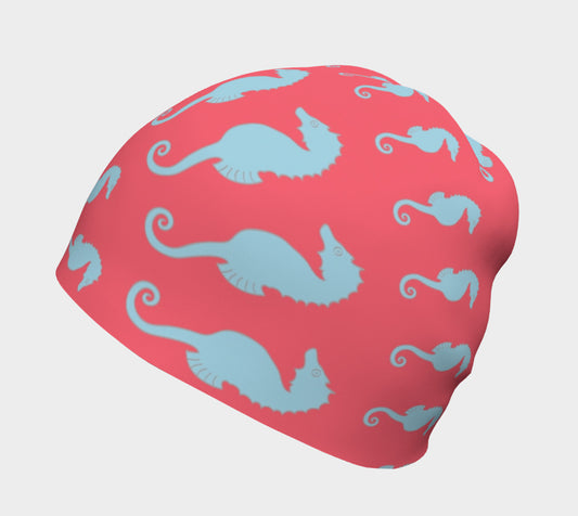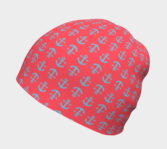 Anchor Toss Winter Beanie - Light Blue on Darker Coral