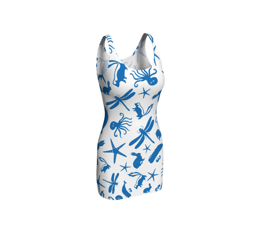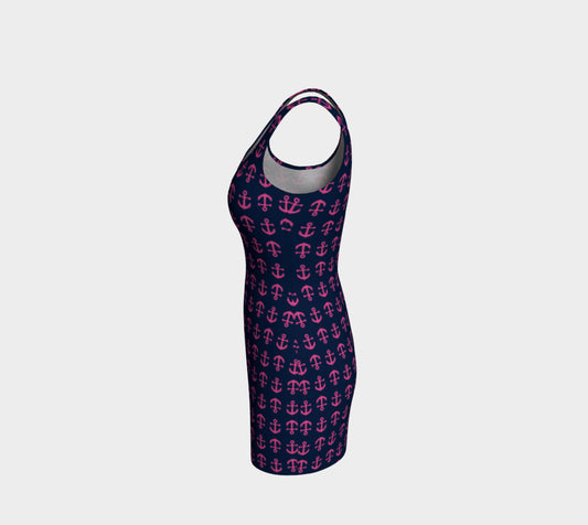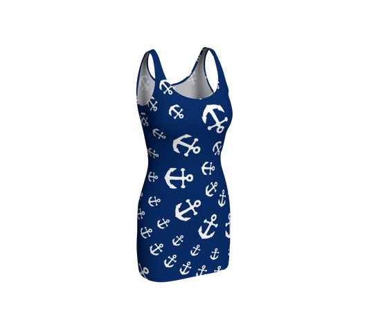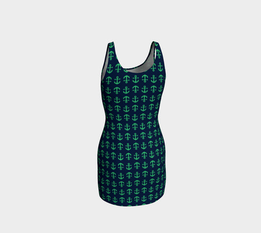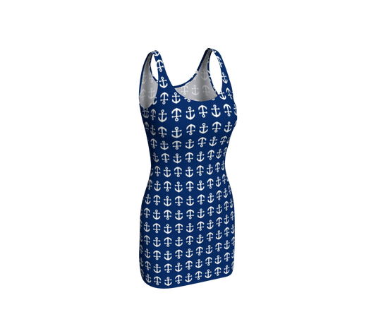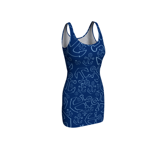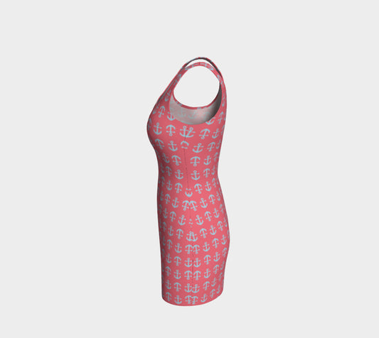 Anchor Toss Bodycon Dress - Light Blue on Coral