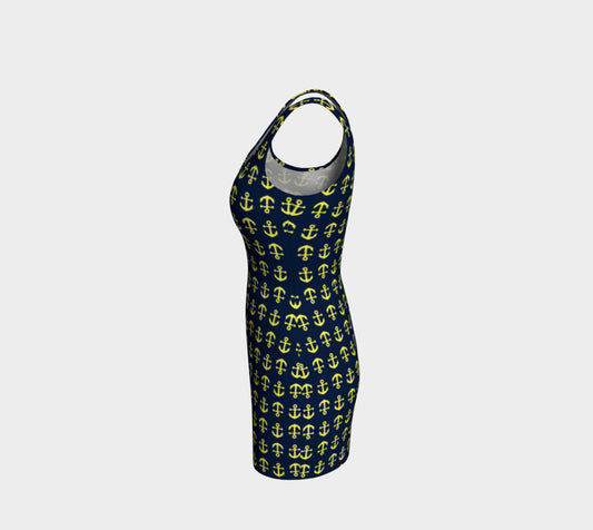Anchor Toss Bodycon Dress - Yellow on Navy