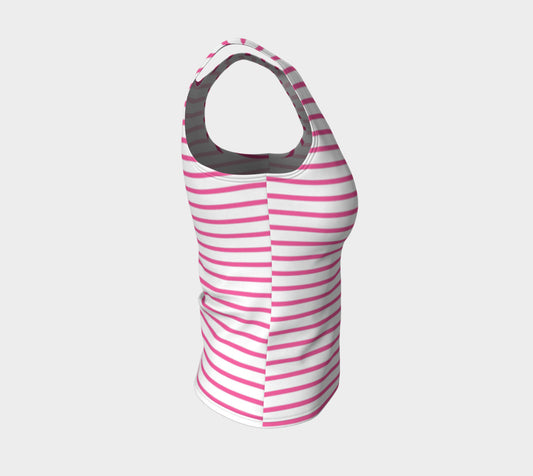Striped Fitted Tank Top - White on Pink