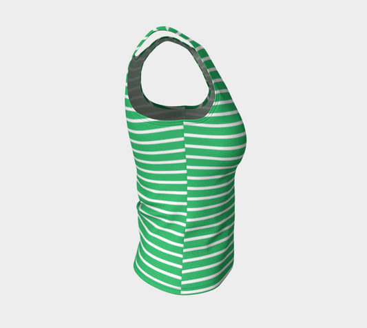 Striped Fitted Tank Top - White on Green