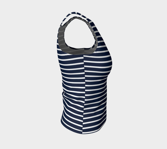 Striped Fitted Tank Top - White on Navy