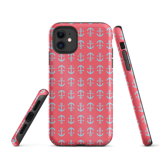 Anchor Toss iPhone Case - Lt. Blue on Coral