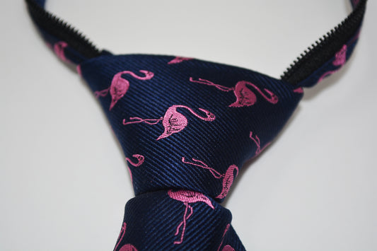 Flamingo Necktie - Pink on Navy, Woven Silk