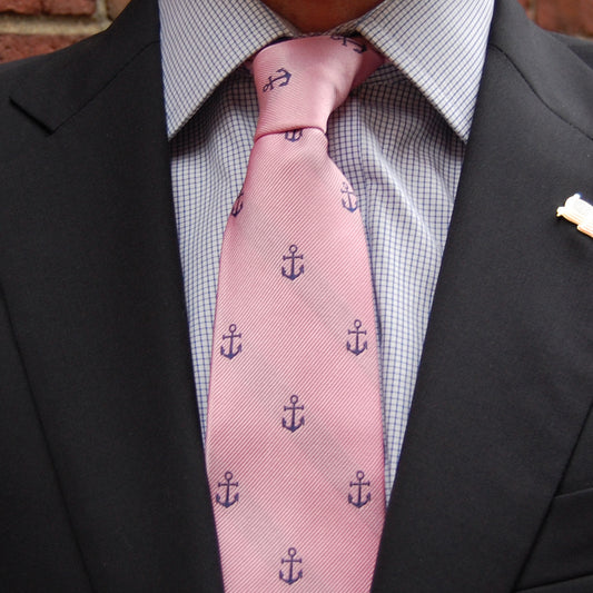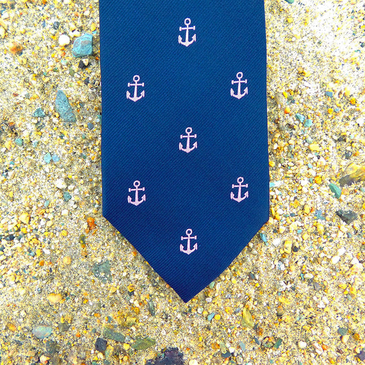 • Anchor Necktie - Pink on Navy, Woven Silk - SummerTies