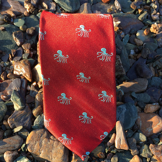 • Octopus Necktie - Red, Woven Silk - SummerTies