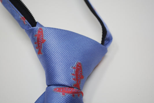 Trout Necktie - Light Blue, Printed Silk