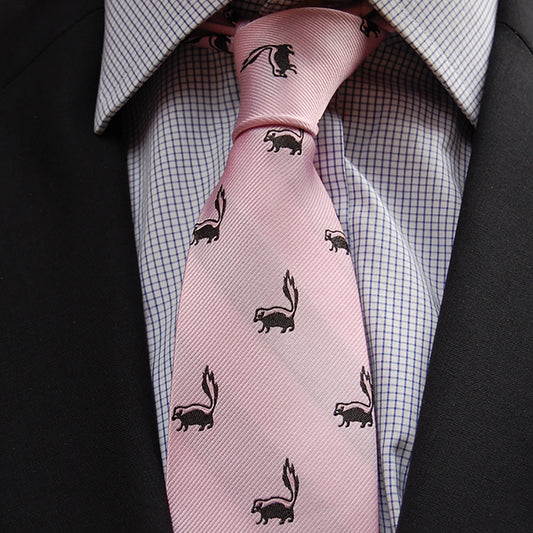 Skunk Necktie - Light Pink, Woven Silk