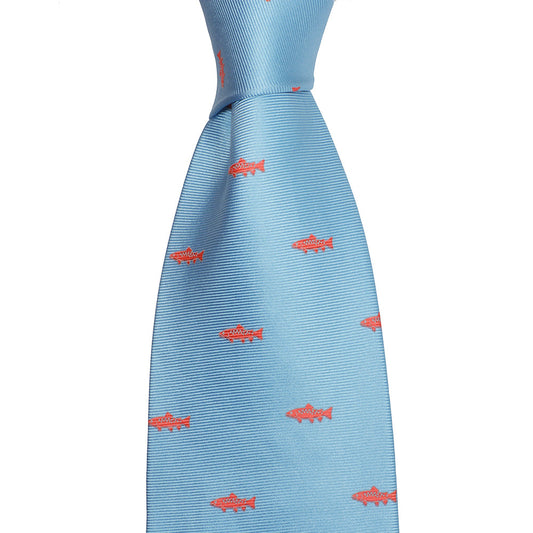 Trout Necktie - Light Blue, Woven Silk