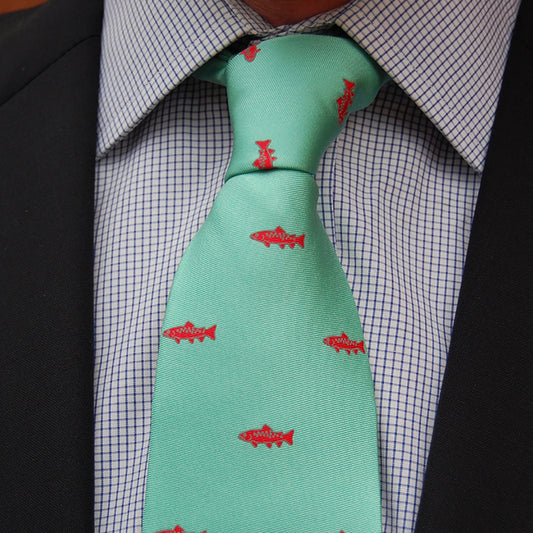 Trout Necktie - Green, Woven Silk