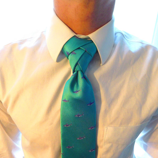 Shark Necktie - Blue on Aqua, Woven Silk