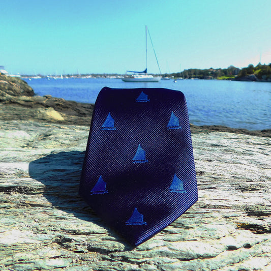 Sailboat Necktie - Navy, Woven Silk