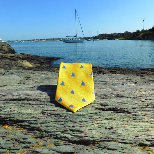 Sailboat Necktie - Yellow, Woven Silk