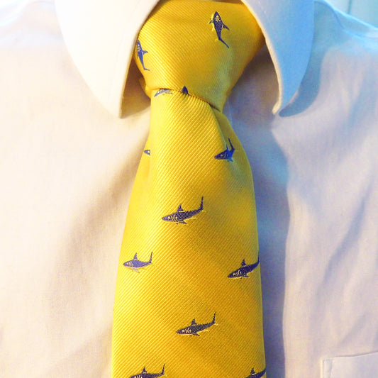 Shark Necktie - Blue on Yellow, Woven Silk