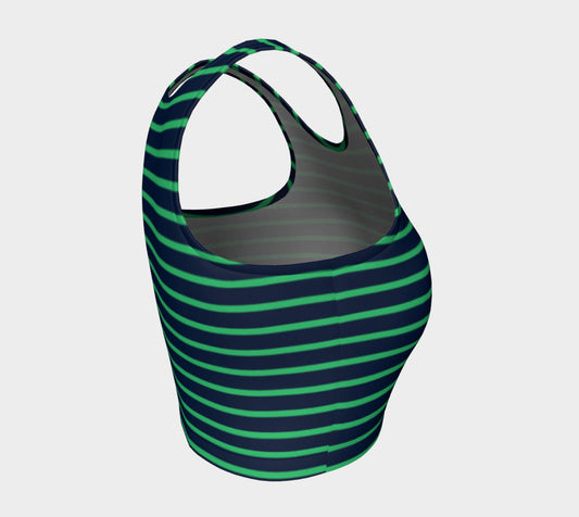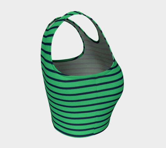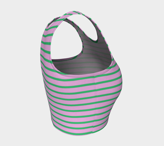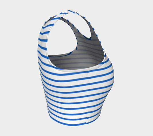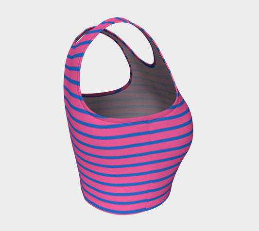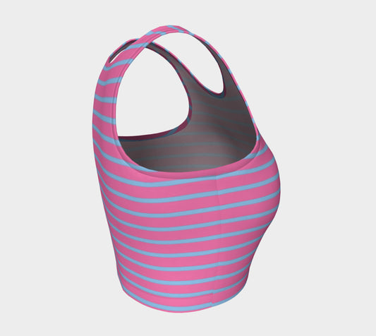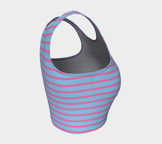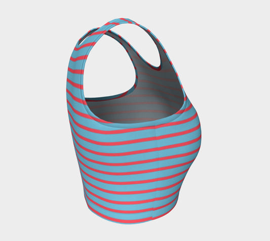 Striped Athletic Crop Top - Darker Coral on Light Blue