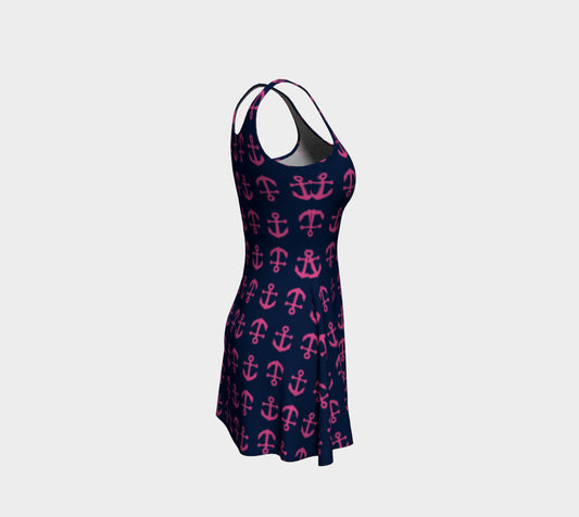 Anchor Toss Flare Dress - Pink on Navy