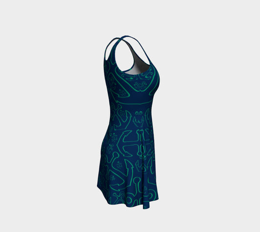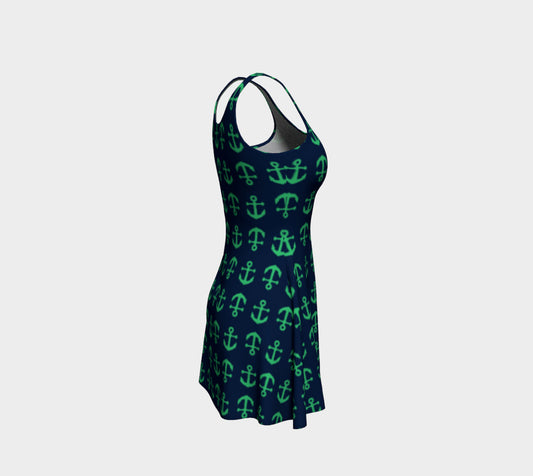 Anchor Toss Flare Dress - Green on Navy