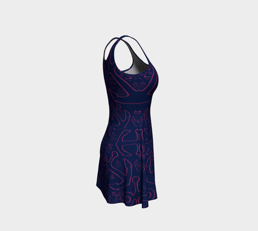 Anchor Dream Flare Dress - Pink on Navy
