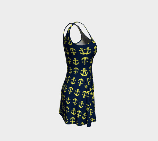 Anchor Toss Flare Dress - Yellow on Navy