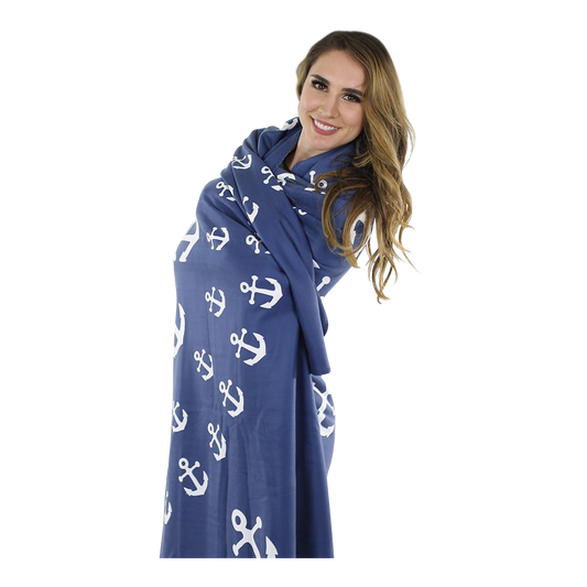 Anchor Dream Fleece Blanket - Blue on Navy