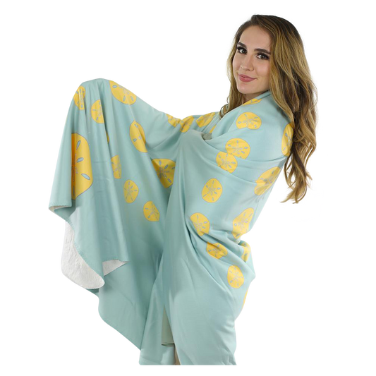 Sand Dollar Fleece Blanket - Yellow on Aqua
