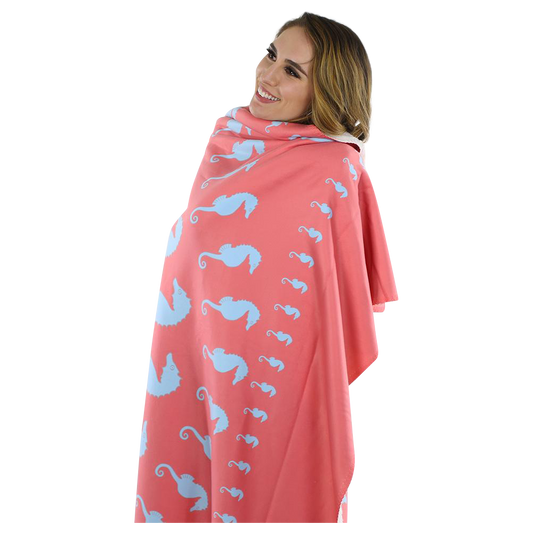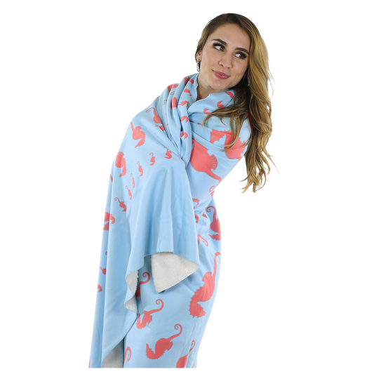 Seahorse Fleece Blanket - Blue on Coral