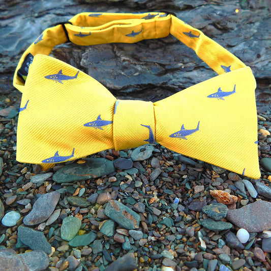 Shark Bow Tie - Blue on Yellow, Woven Silk