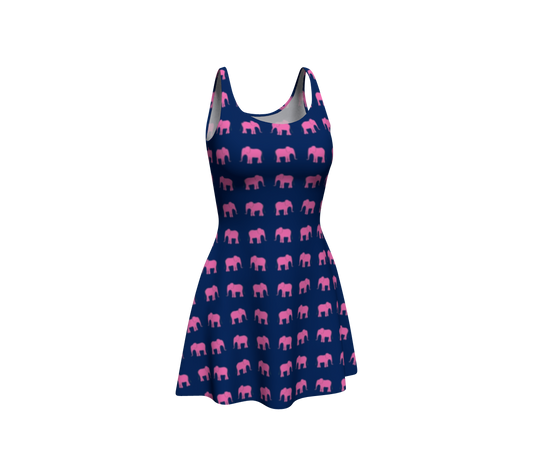 Elephant Flare Dress - Pink on Navy