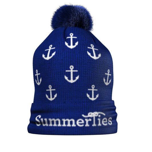 Anchor Winter Pom-Pom Hat - White on Navy